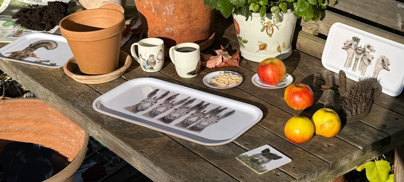 Découvrez les différentes oeuvres de Charlotte Nicolin : plateaux, tasses, torchons et autres accessoires.